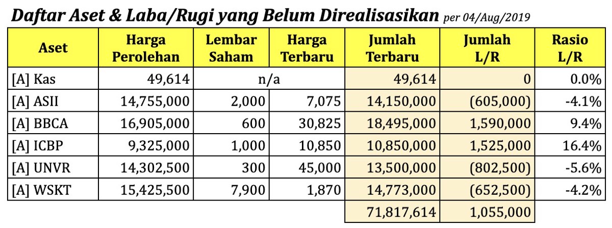 Daftar Aset & Laba/Rugi yang Belum Direalisasikan per tanggal 04 Agustus 2019