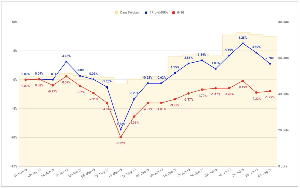 Perbandingan Performa Historis #ProyekDIRA vs IHSG sampai tanggal 04 Agustus 2019