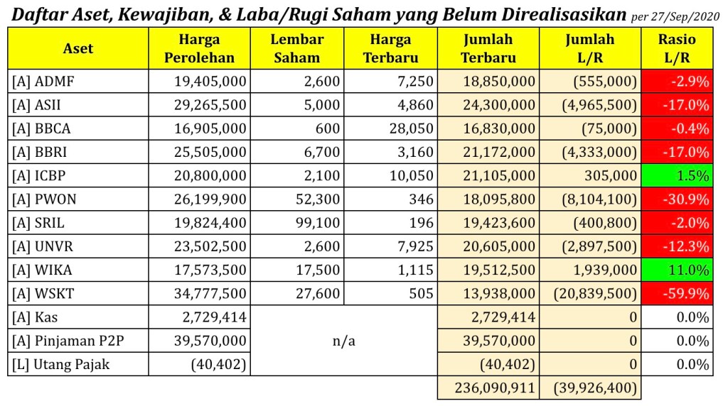 Daftar Aset, Kewajiban, & Laba/Rugi Saham yang Belum Direalisasikan per tanggal 27 September 2020