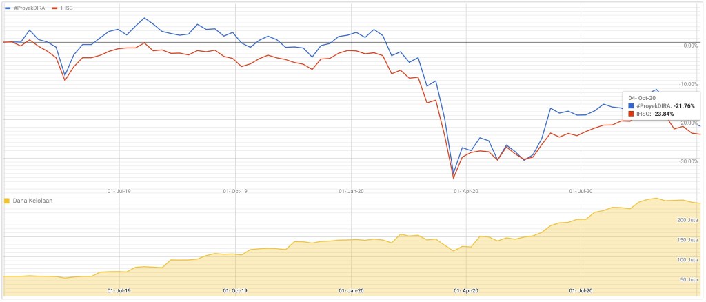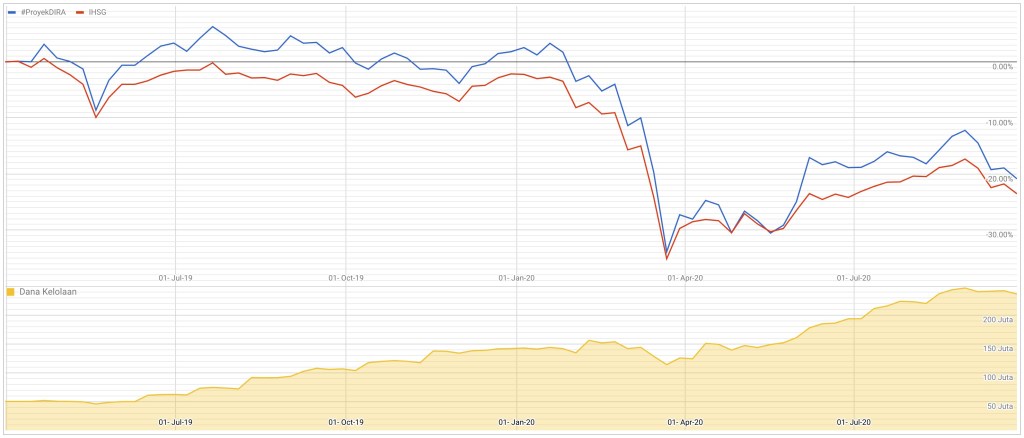 Perbandingan Performa Historis #ProyekDIRA vs IHSG sampai tanggal 27 September 2020