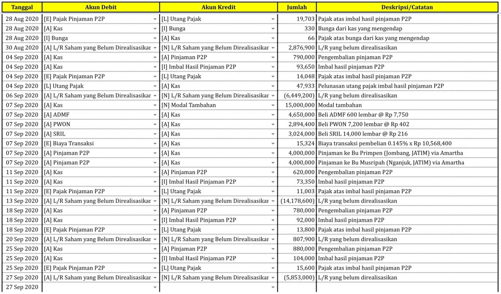 Laporan Neraca & Laba/Rugi per tanggal 27 September 2020Catatan Transaksi sampai tanggal 27 September 2020