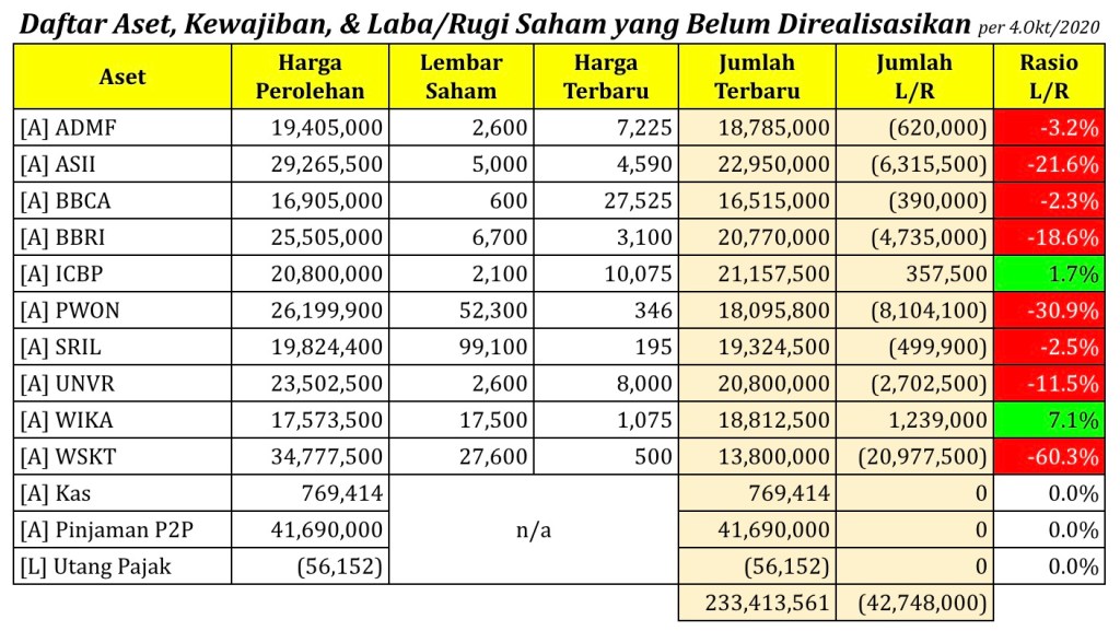 Daftar Aset, Kewajiban, & Laba/Rugi Saham yang Belum Direalisasikan per tanggal 4 Oktober 2020
