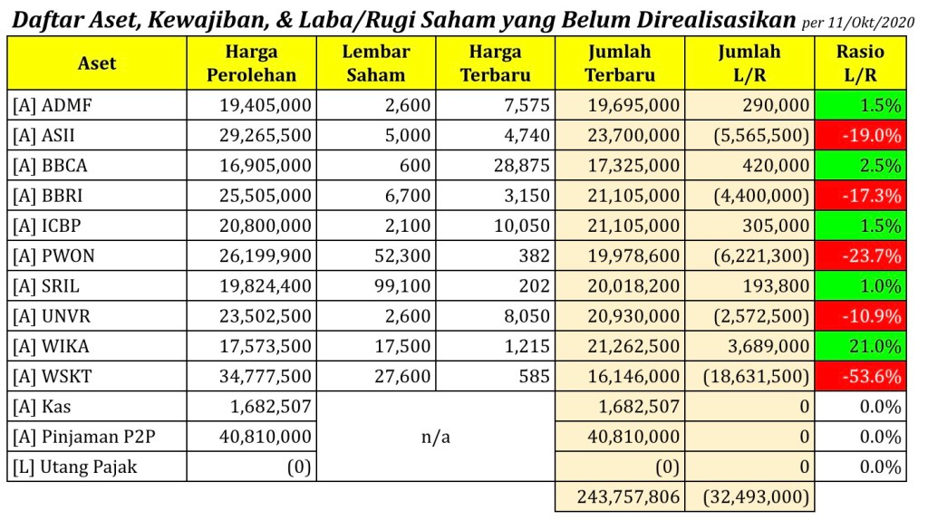 Daftar Aset, Kewajiban, & Laba/Rugi Saham yang Belum Direalisasikan per tanggal 11 Oktober 2020