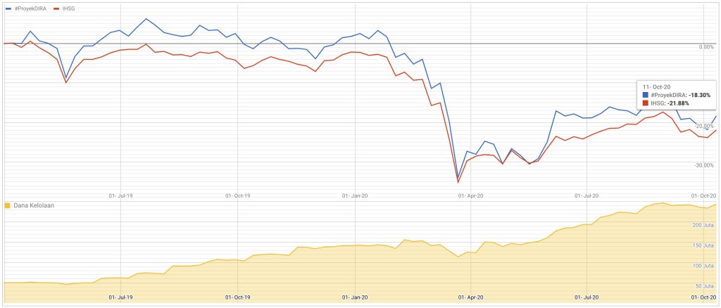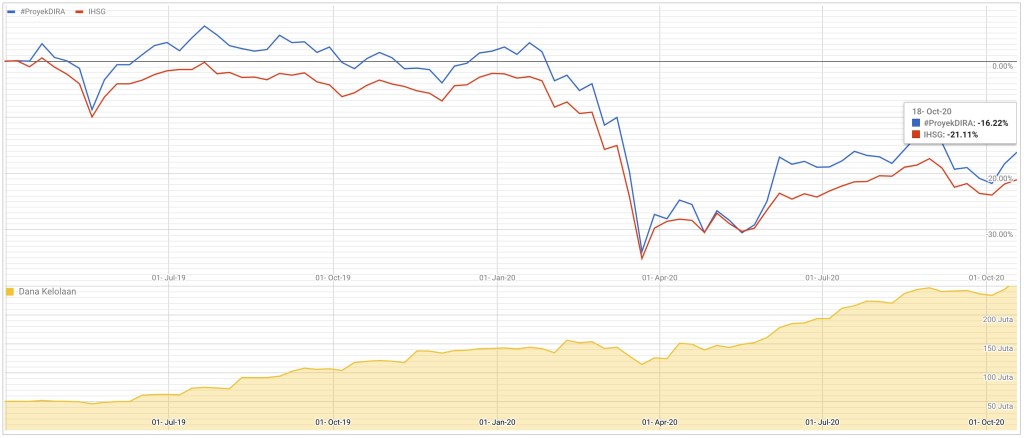 Perbandingan Performa Historis #ProyekDIRA vs IHSG sampai tanggal 18 Oktober 2020