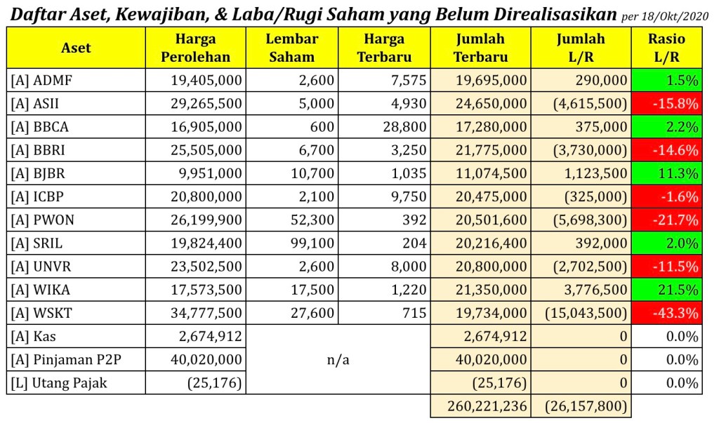 Daftar Aset, Kewajiban, & Laba/Rugi Saham yang Belum Direalisasikan per tanggal 18 Oktober 2020