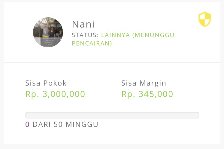 Asuransi pinjaman P2P ke Bu Nani (Majalengka, JABAR) sebesar Rp -45,000