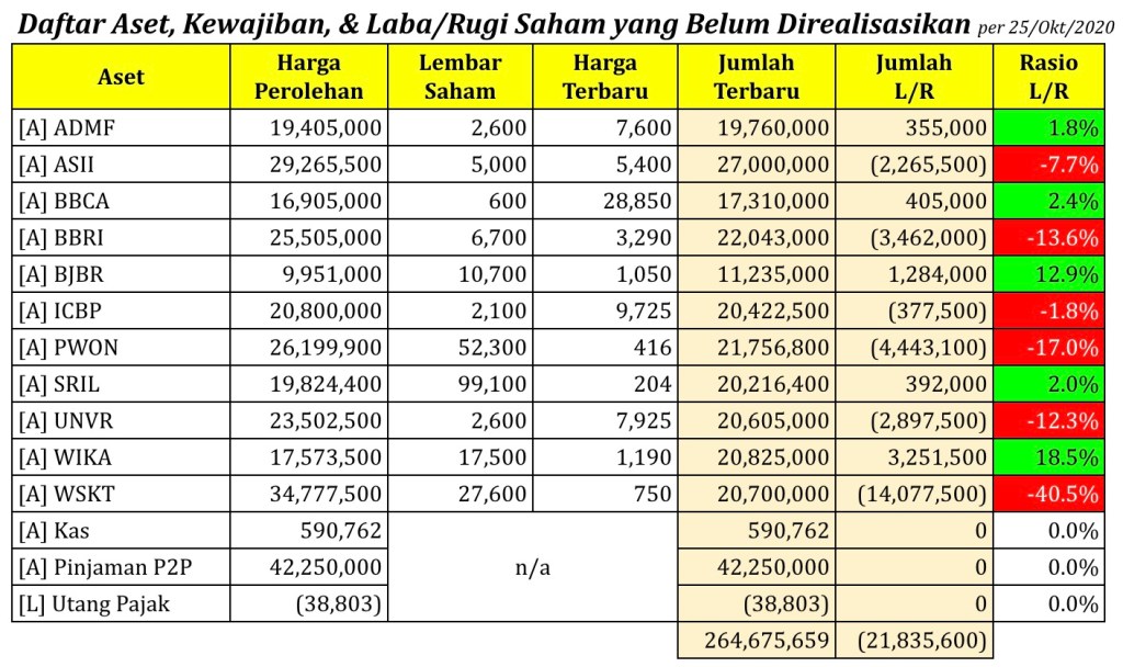Daftar Aset, Kewajiban, & Laba/Rugi Saham yang Belum Direalisasikan per tanggal 25 Oktober 2020