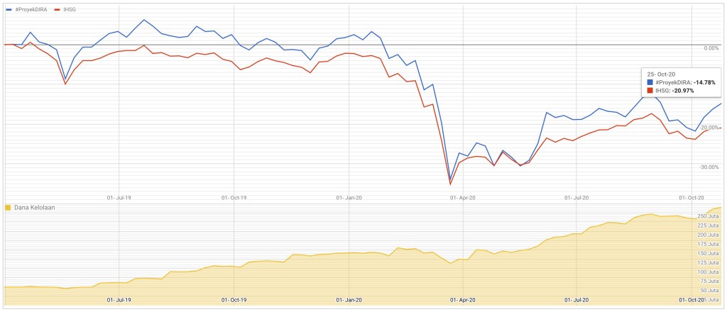 Perbandingan Performa Historis #ProyekDIRA vs IHSG sampai tanggal 25 Oktober 2020