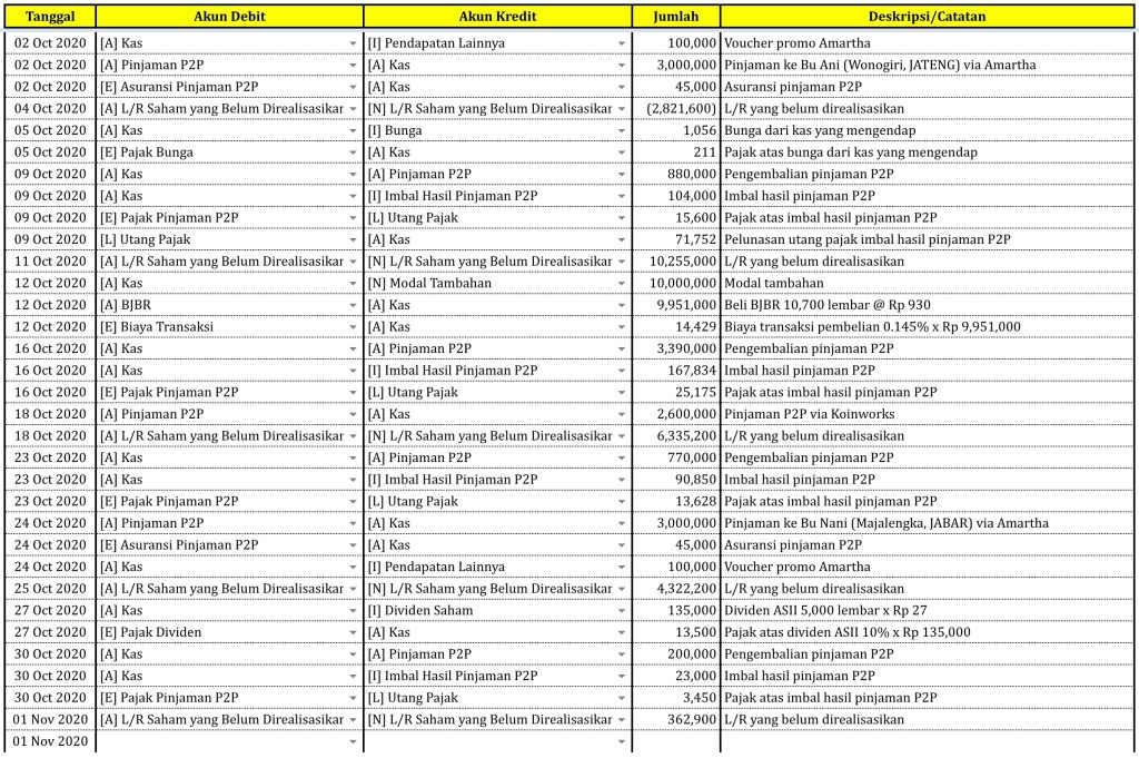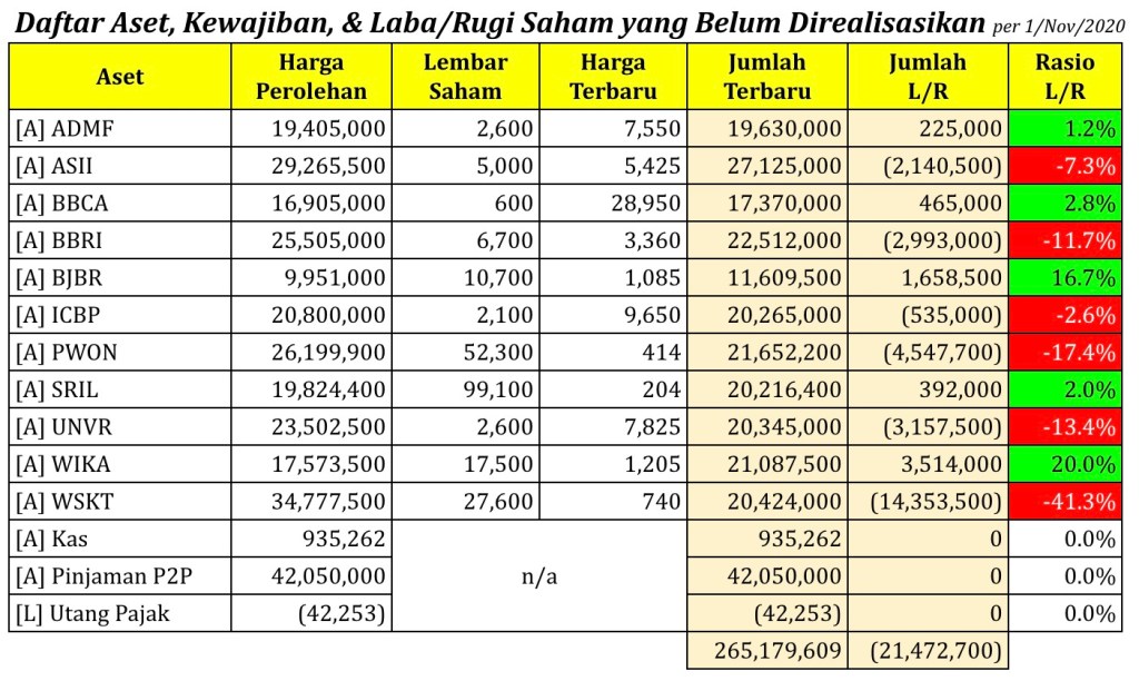 Daftar Aset, Kewajiban, & Laba/Rugi Saham yang Belum Direalisasikan per tanggal 1 November 2020