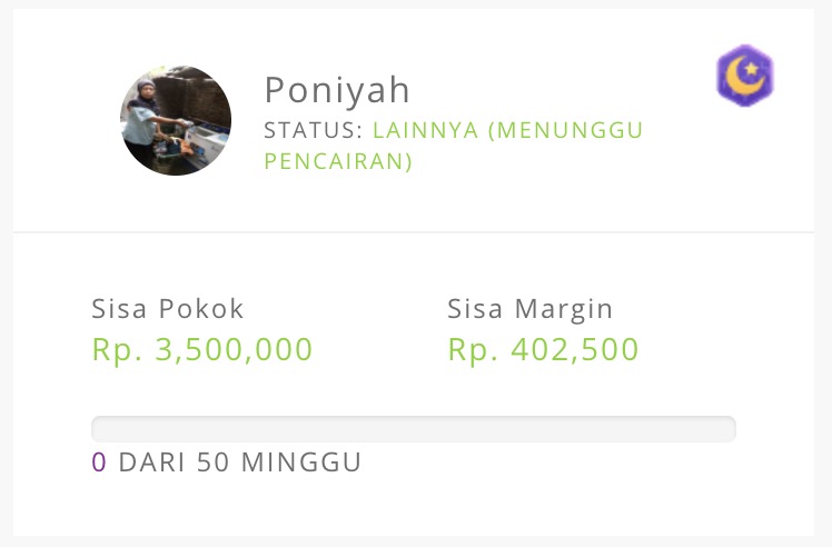 Status pinjaman P2P untuk Bu Poniyah via Amartha