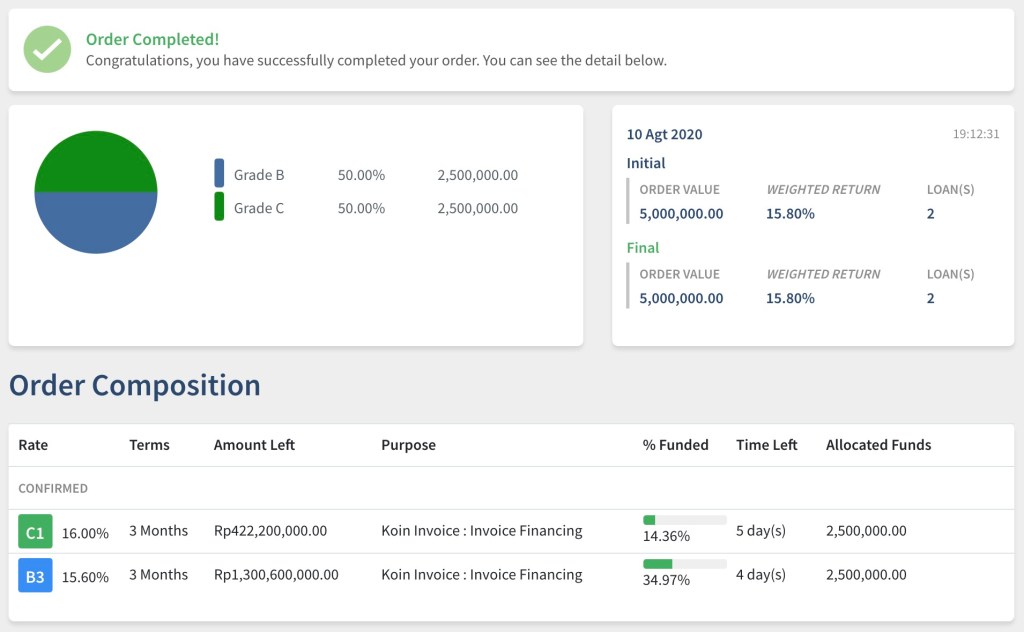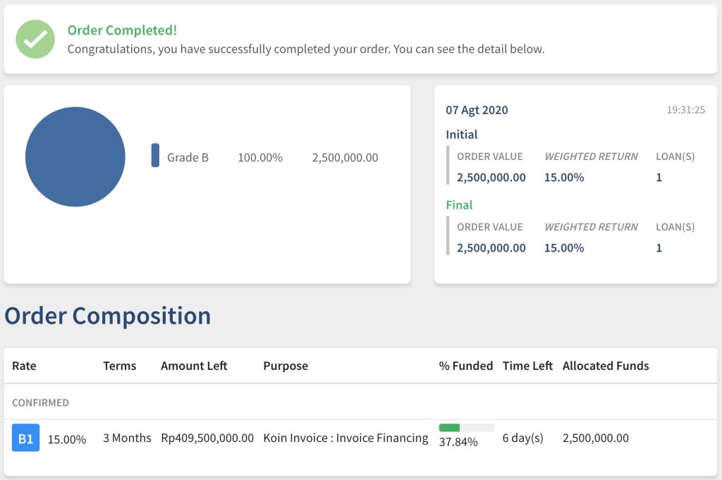 Pajak atas imbal hasil pinjaman P2P di bulan Agustus sebesar Rp 47,933 juga telah kami lunasi.
