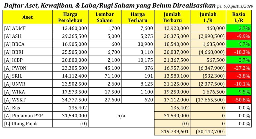 Daftar Aset, Kewajiban, & Laba/Rugi Saham yang Belum Direalisasikan per tanggal 9 Agustus 2020