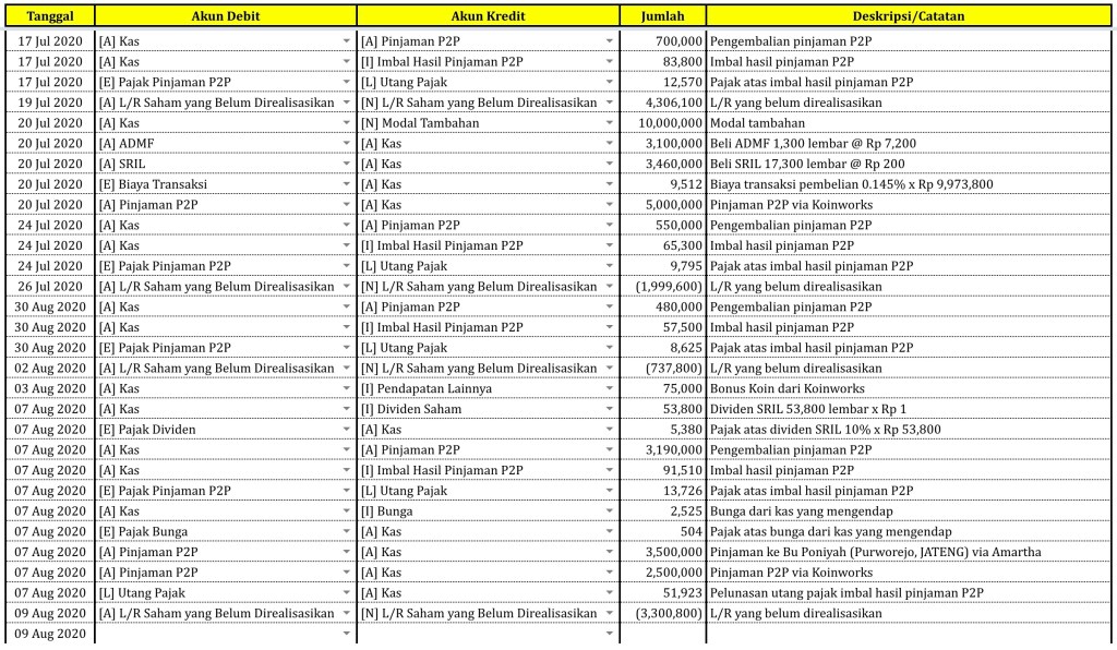 Catatan Transaksi sampai tanggal 9 Agustus 2020