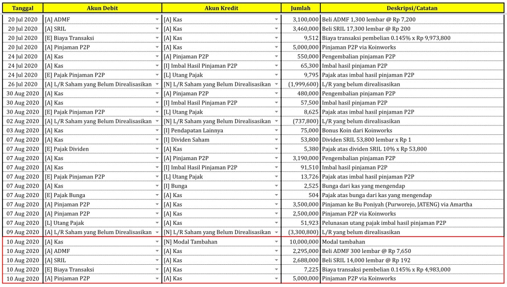 Catatan Transaksi sampai tanggal 10 Agustus 2020