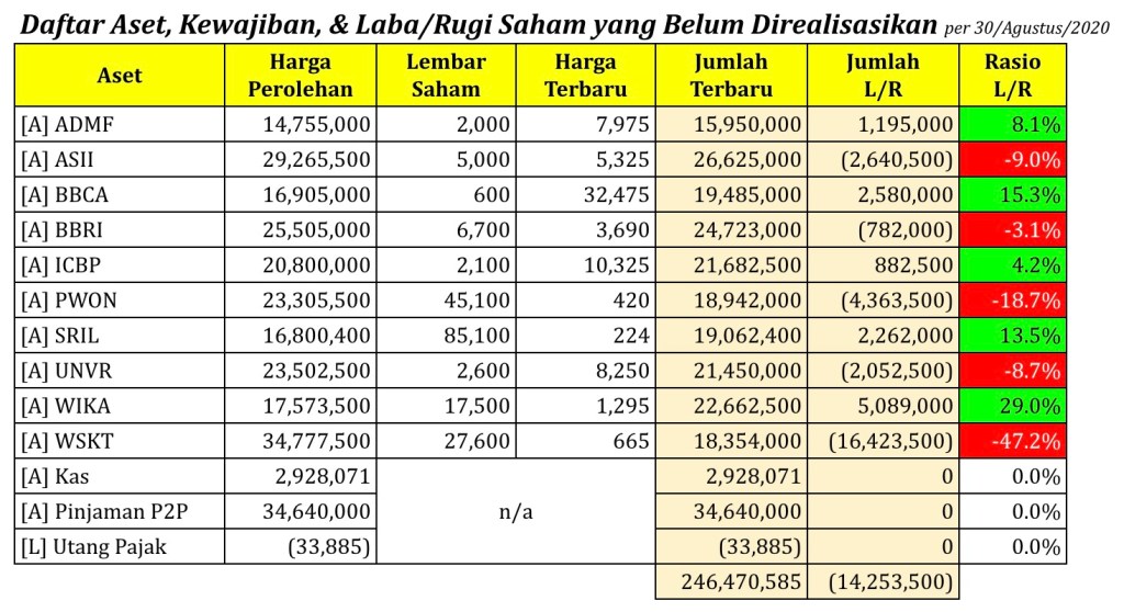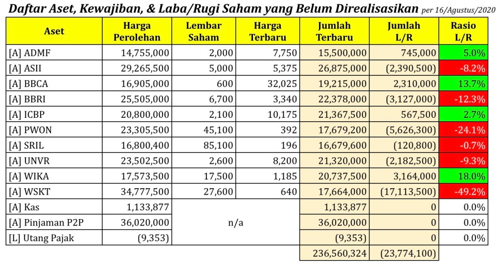 Daftar Aset, Kewajiban, & Laba/Rugi Saham yang Belum Direalisasikan per tanggal 16 Agustus 2020