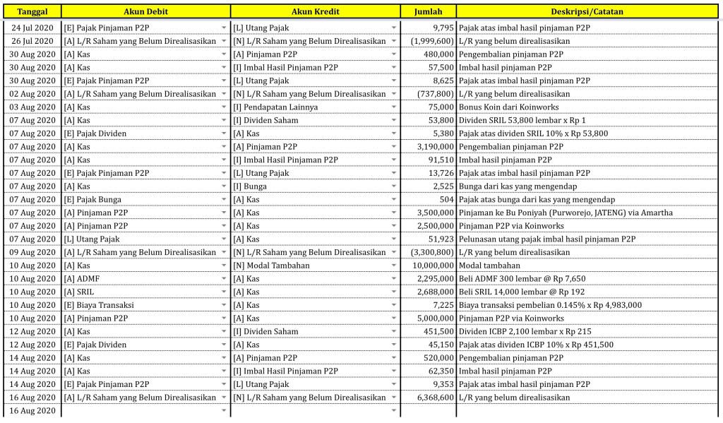 Catatan Transaksi sampai tanggal 16 Agustus 2020