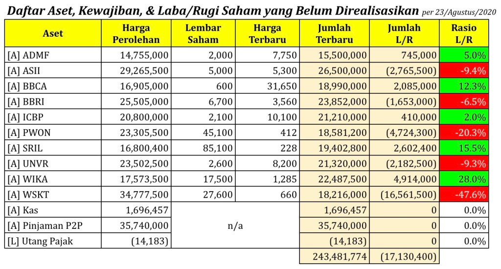 Daftar Aset, Kewajiban, & Laba/Rugi Saham yang Belum Direalisasikan per tanggal 23 Agustus 2020