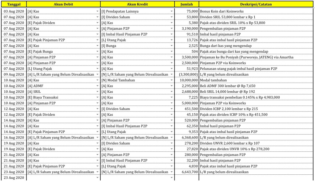 Catatan Transaksi sampai tanggal 23 Agustus 2020