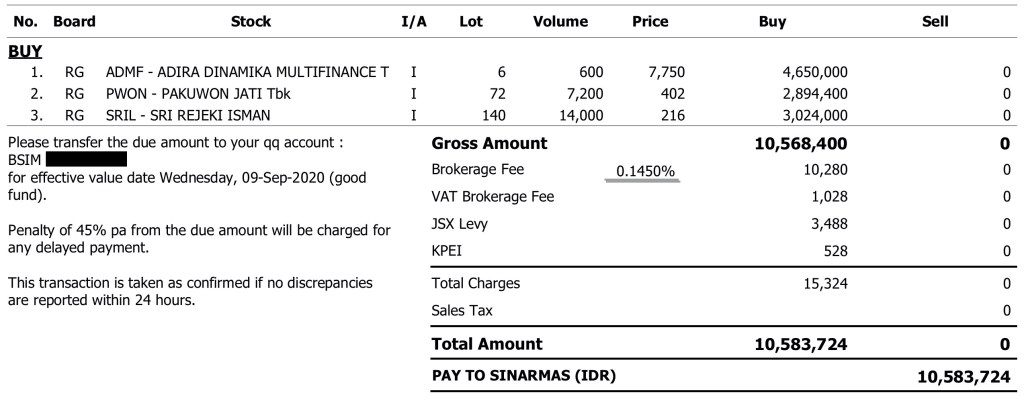 Konfirmasi transaksi pembelian saham 10 Agustus 2020