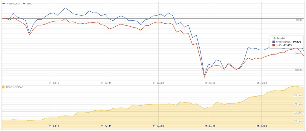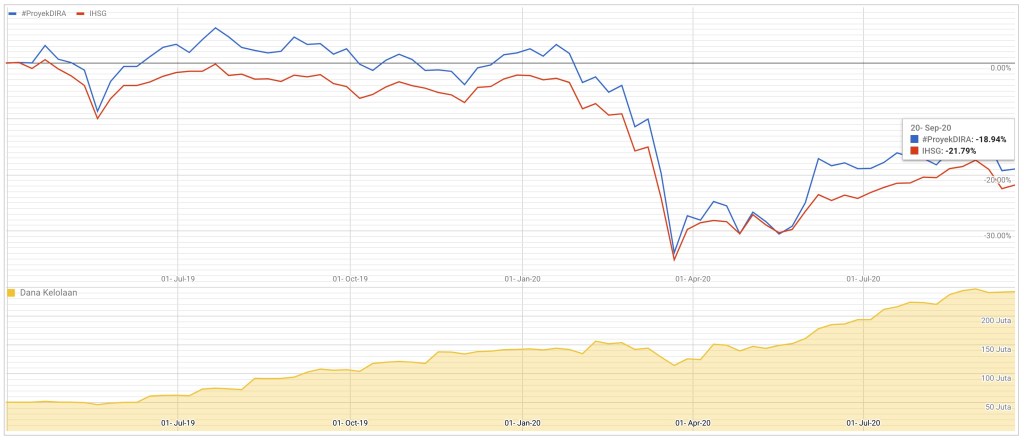 Perbandingan Performa Historis #ProyekDIRA vs IHSG sampai tanggal 20 September 2020