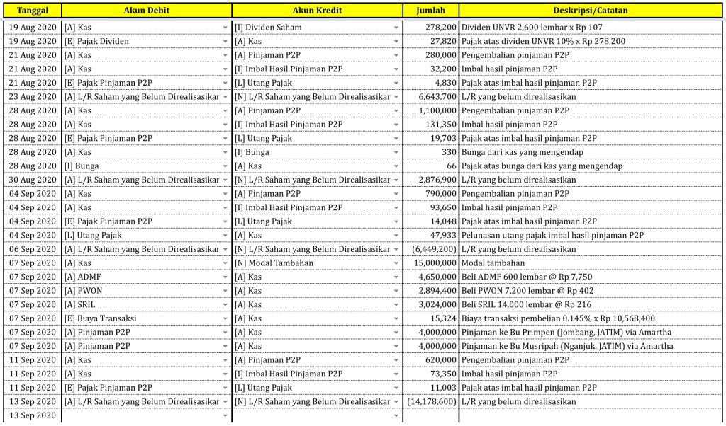 Catatan Transaksi sampai tanggal 13 September 2020