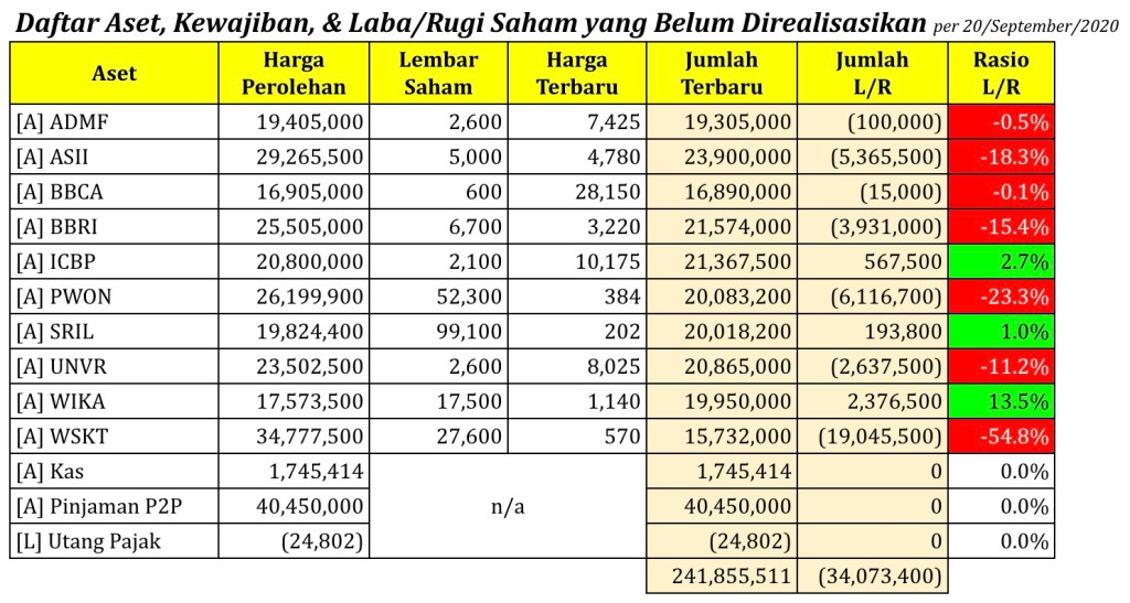 Daftar Aset, Kewajiban, & Laba/Rugi Saham yang Belum Direalisasikan per tanggal 20 September 2020