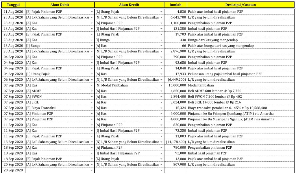 Catatan Transaksi sampai tanggal 20 September 2020
