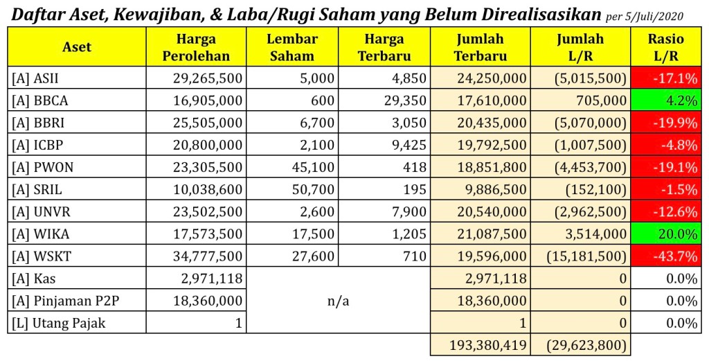 Daftar Aset, Kewajiban, & Laba/Rugi Saham yang Belum Direalisasikan per tanggal 5 Juli 2020