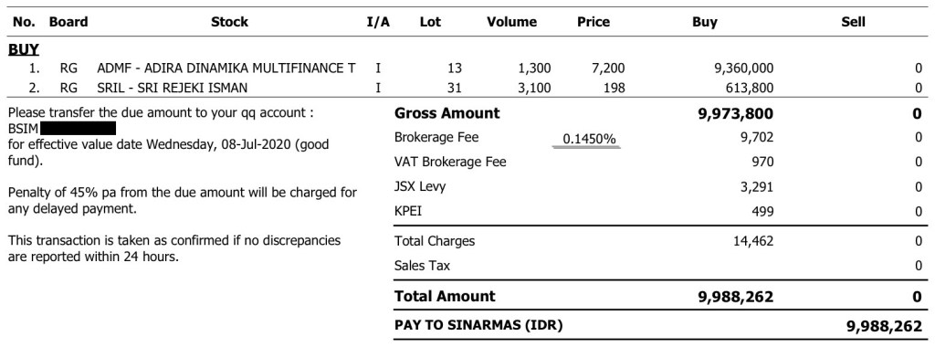 Konfirmasi Transaksi Pembelian Saham Tanggal 6 Juli 2020