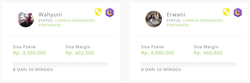 Penyaluran pinjaman P2P kepada Bu Wahyuni di Solo, Jawa Tengah sebesar Rp 3,500,000. Status pinjaman saat ini sedang menunggu pencairan.