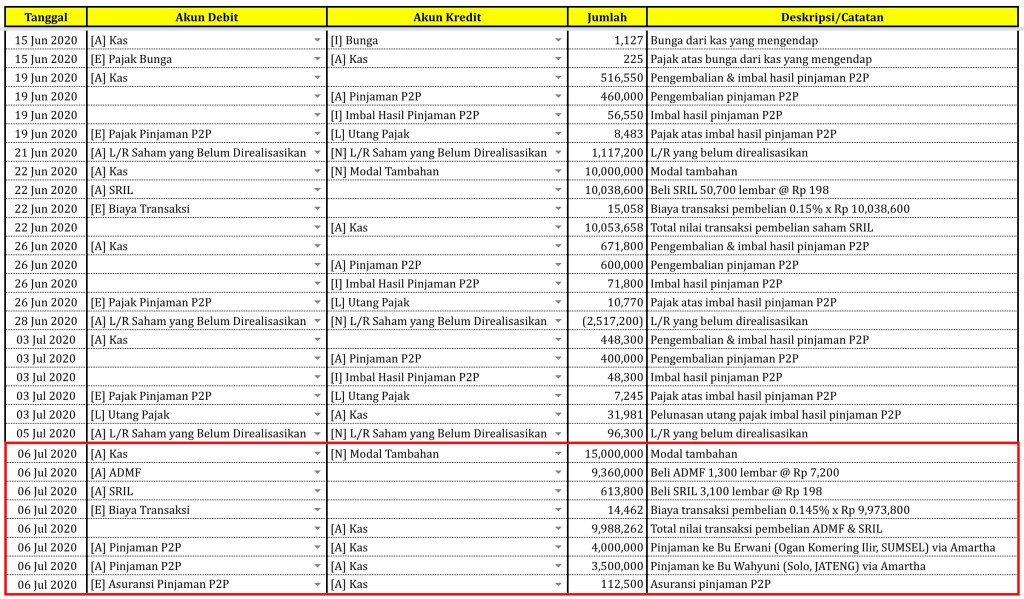 Berikut Catatan Transaksi yang telah diperbaharui dengan data transaksi pembelian saham di atas.