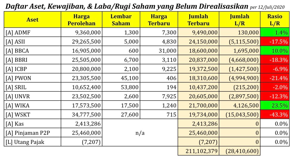Daftar Aset, Kewajiban, & Laba/Rugi Saham yang Belum Direalisasikan per tanggal 12 Juli 2020