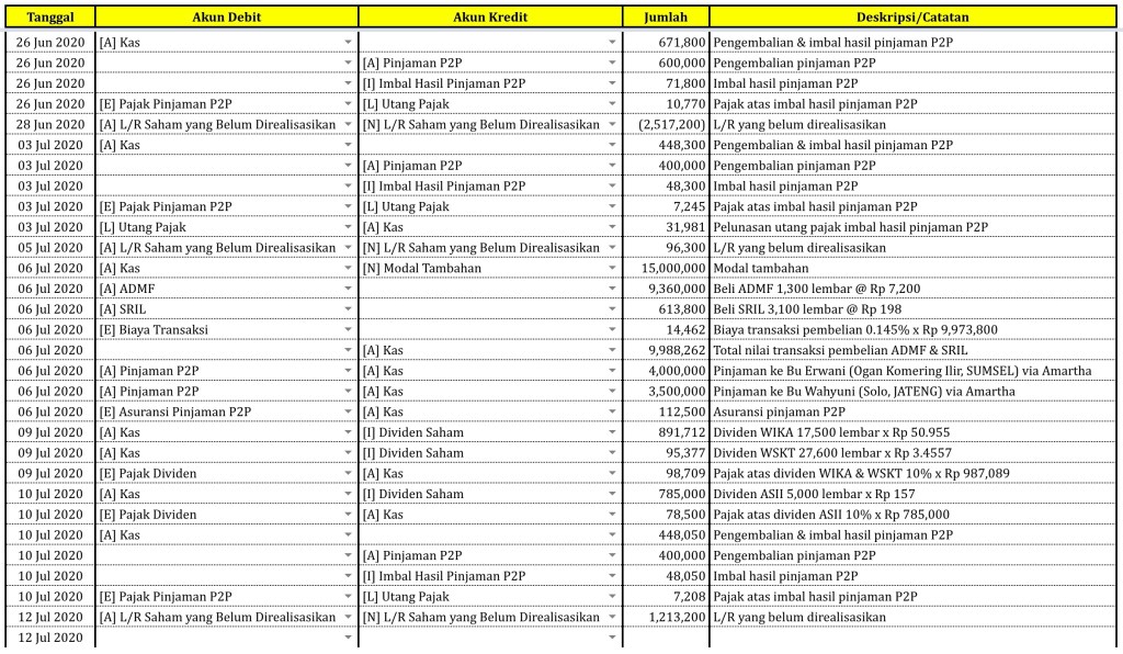 Laporan Neraca & Laba/Rugi per tanggal 12 Juli 2020Catatan Transaksi sampai tanggal 12 Juli 2020